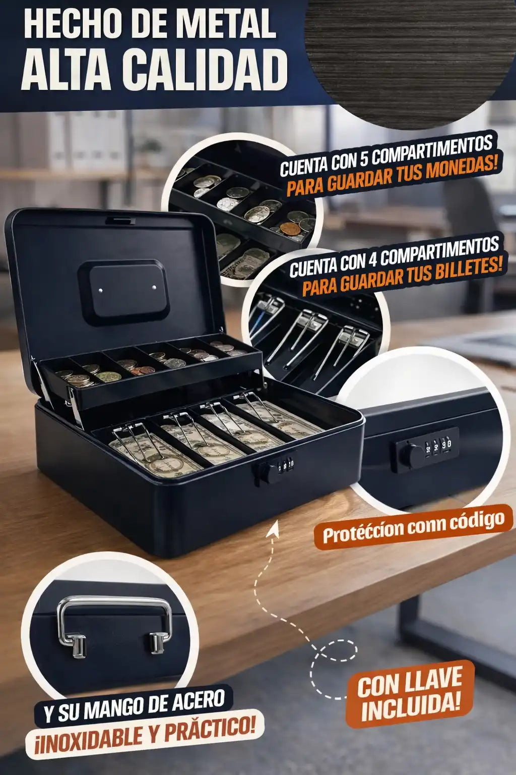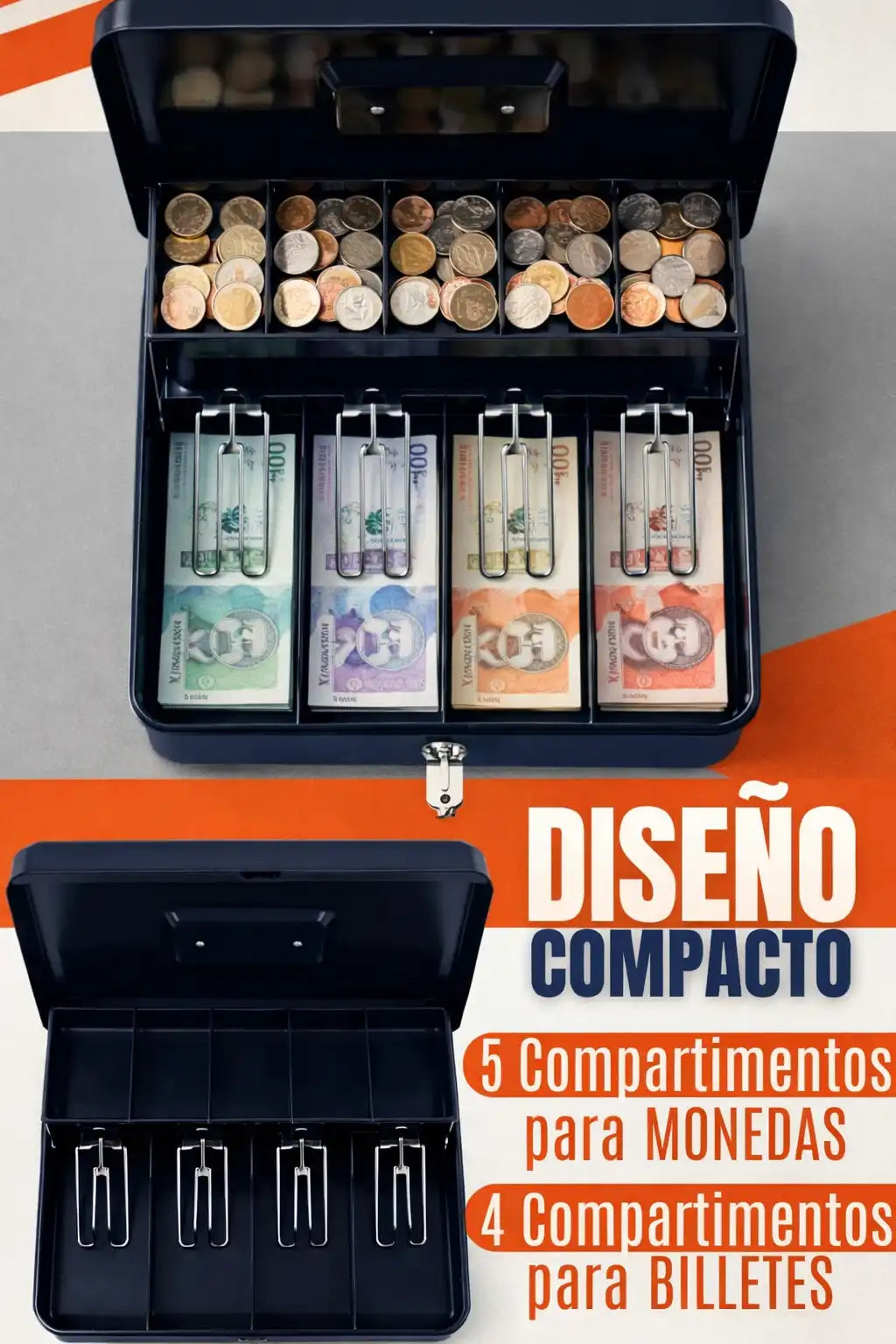 Menos confusión al contar - Separadores visibles evitan mezclar billetes.